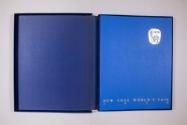 Descriptiona) A large royal blue leather album with the title in gold tooling on the cover: NEW YORK WORLD'S FAIR / 1939. Also on the cover is a logo featuring a partial illustration of the Statue of Library and the date "1939" in blue on a gilt background along with © NYWF. Attached within the album is a spiral bound book with a white cardstock title page with blue and orange text that reads: PROPOSED PLANS / FOR PARTICIPATION / BY THE / GOVERNMENT / OF THE / UNITED STATES / OF AMERICA / NEW YORK WORLD'S FAIR / 1939.