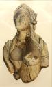 DescriptionAn original watercolor painting of a ship's carved pine figurehead of a female figure (head and upper torso), holding her right hand over her left breast.