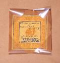 The picture is glazed and framed in a 2 7/8" wood frame constructed from an ancient Santa Fe building. On the reverse side is the artist's personalized label with her name, address, and the title of picture: PANSY STOCKTON SUN PAINTINGS / NAVAJO - HOME / IN / MONUMENT / VALLEY / ORIGINATOR - PANSY R. STOCKTON / P.O. BOX 865 / SANTA FE, NEW MEX. Also on the reverse is a typed label with a list of all the natural materials used for various parts of the picture, and the geographical sources for the material.