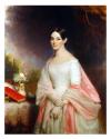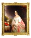 Label TextThis painting is the wedding portrait of Franklin Roosevelt’s maternal grandmother, Catherine Robbins Lyman Delano (1825-1896). Artist William West painted the portrait shortly before Catherine’s 1843 marriage to Warren Delano II. Several months after this portrait was completed, Catherine traveled with her new husband to China, where Warren was involved in merchant trade. The portrait remained in the Delano family for over 150 years until it was acquired for the FDR Library and Museum in 2003.The painting is framed in a modern (2008) 5 ¼”w Louis XIV-style gilt wood frame. A plaque attached to the bottom of the frame is inscribed: CATHERINE ROBBINS (LYMAN) DELANO / 1825 – 1896 / PAINTED 1843 BY WILLIAM E. WEST.