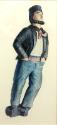DescriptionAn original watercolor painting of a ship's carved and stained pine figurehead of a bearded man in dark coat and blue trousers.