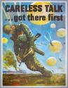 DescriptionA color poster featuring an illustration of an injured or dead soldier, with visible wounds, attached to a parachute and just reaching the ground. In the sky behind him are airplanes and other descending parachutists, while several burning fires are visible in the distant left background. Black text at the top of the poster reads: CARELESS TALK / . . . got there first. The facsimile signature of artist Herbert Morton Stoops is in the lower right corner of the illustration.