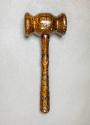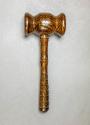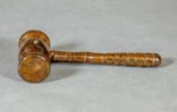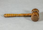 DescriptionA gavel made from natural wood with a clear finish and eight rings carved into the handle.