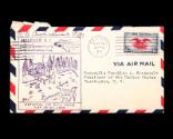 DescriptionA stamp cover commemorating National Air Mail Week in 1938. On the left side of the white air mail envelope is a stamped purple ink cachet consisting of a box enclosing an illustration of river-side cabin with trees in the background and a deer in the foreground. Text above and below the illustration reads: MEDFORD, N.J. / Center of Summer Resorts / In the South Jersey Pines. / [illustration of Air Mail plane] / NATIONAL AIR MAIL WEEK / MAY 15 - 21, 1938. Above the cachet is the original ink signature of the Medford postmaster: W. B. Cowfurthuais P.M.