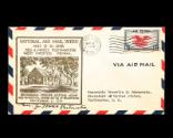 DescriptionA stamp cover commemorating National Air Mail Week in 1938. On the left side of the white air mail envelope is a printed gold-colored ink cachet consisting of a box which encloses an illustration of a small, single level building surrounded by trees. Text in the cachet reads: NATIONAL AIR MAIL WEEK / MAY 15 • 21 1938 / GEO. J. MOSES POSTMASTER / WEST CHESTER. PENNA. / BIRMINGHAM • FRIENDS • MEETING • HOUSE / USED AS HOSPITAL DURING BATTLE OF BRANDYWINE / SEPTEMBER • 11 • 1777. Below the cachet is the original ink signature of the West Chester postmaster: Geo. J. Moses, Postmaster.