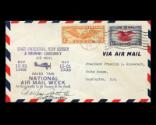 DescriptionA stamp cover commemorating National Air Mail Week in 1938. On the left side of the white air mail envelope is a stamped purple ink cachet featuring the illustration of an airplane surrounded by text that reads: EAST PATERSON, NEW JERSEY / A GROWING COMMUNITY / AIR MAIL / MAY 15-21 1938 / MAY 15-21 1938 / SAVES TIME / NATIONAL / AIR MAIL WEEK / Air Mail Service To All Corners Of The World. Below the cachet is the original ink signature of the East Paterson postmaster: Charles Roth Jr. / Postmaster.