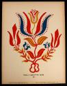 DescriptionA silk screen print of a flower design in blue, red, and mustard yellow on a white background. The text below the image reads: FROM A SGRAFFITO PLATE / 1810 / FOLK ART OF RURAL PENNSYLVANIA PLATE No. 2 INDEX OF AMERICAN DESIGN PENNA ART PROJECT W P A. On the reverse of the print is a line drawing and explanation of the 1810 plate from which the design was inspired.