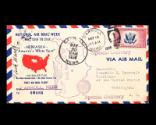 DescriptionA stamp cover commemorating National Air Mail Week in 1938. On the left side of the white air mail envelope is a printed cachet featuring a solid red image of the United States with the state of Nebraska highlighted in white. Blue text above and below the United States reads: NATIONAL AIR MAIL WEEK / MAY 15th TO 21st / - NEBRASKA - / "America's White Spot" / NO SALES TAX / No State Bonded Debt - No State Income Tax / FIRST AIR MAIL FLIGHT / From CARROLL, NEBR [stamped in purple ink] / to OMAHA. Along the left side of the cachet is the original ink signature of the Carroll postmaster: Nick Warth - / P.M.