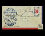 DescriptionA stamp cover commemorating National Air Mail Week in 1938. On the left side of the white air mail (par avion) envelope is a stamped blue ink cachet featuring an oval within which are illustrations of various tools and an airfield with an airplane sitting on the runway. Text in the cachet reads: ATHOL MADE TOOLS - THE WORLD'S BEST / NATIONAL AIR-MAIL WEEK / MAY 15 - 21 1938 / Orange - Athol Airport / SPONSORED BY / ATHOL CHAMBER OF COMMERCE / ATHOL - MASS. Below the cachet is the original ink signature of the Athol postmaster: Richard Mullen Postmaster.