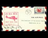 DescriptionA stamp cover commemorating National Air Mail Week in 1938. On the left side of the white air mail envelope is a stamped red ink cachet featuring the illustration of an airplane and text that reads: AIR MAIL WEEK / MAY 15-21, 1938 / RAHWAY, N. J. Below the cachet is the original ink signature of the Rahway postmaster.