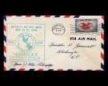 DescriptionA stamp cover commemorating National Air Mail Week in 1938. On the left side of the white air mail envelope is a stamped teal-colored ink cachet consisting of a box enclosing an illustration of North and South America flanked and encircled by text that reads 1918 / AIR MAIL SAVES TIME / 1938. Additional text above and below the illustration reads: NATIONAL AIR MAIL WEEK / MAY 15-21, 1938 / TEANECK, N.J. / The Fastest Growing / Community In the State. Below the cachet is the original ink signature of the Teaneck postmaster: James J Allen Postmaster.