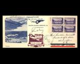 DescriptionA stamp cover commemorating the 1938 U.S. air mail first flight from Juneau to Fairbanks, Alaska. In the lower center portion of the white air mail envelope is a stamped reddish-brown ink cachet consisting of an illustration of an airplane flying over a scene, flanked by totem poles, of a body of water with mountains in the background. Text above and below the illustration reads: UNITED STATES / Air Mail / JUNEAU – FAIRBANKS/ first flight. On the left side of the envelope is a printed blue halftone photographic image of an airplane flying over land with mountains and a river in the background and the world “Captain” printed below the image. Above and to the left of the photographic image are the original ink signatures and tiles of the Fairbanks and Juneau postmasters, “R E Sheldon” and “Albert Wile” respectively, and the signature of the Governor of Alaska, “John W. Troy”.