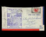 DescriptionA stamp cover commemorating National Air Mail Week in 1938. On the left side of the white air mail (par avion) envelope is a stamped blue ink cachet featuring a box within which is the illustration of a plane flying over the Hampden County Memorial Bridge with a clock tower in the background. Text in the cachet reads: National Air Mail Week / MAY 15- 21, 1938 / Twentieth Anniversary / of Air Mail Service / Springfield, Massachusetts / "The Convention City of New England." Running along the left side of the cachet is the original ink signature of the Springfield postmaster: Thos. J. Ashe, P.M.