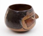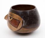 DescriptionA pottery bowl in the shape of a human head with a protruding nose and ears.