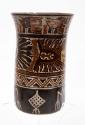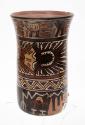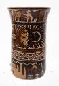 DescriptionA pottery vase. Depicted on the lower portion of the vase is an image of a face with a small protruding nose. A pattern of animal figures decorates the rest of the vase.