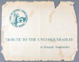 Label TextThis poster is one in a series of posters (MO 2010.8.1-5) titled, "Tribute to the Unconquerables by Joseph Auslander.” Accompanying the series is a paper folder and a printed letter by Joseph Auslander with the heading, "THE OPEN LETTERS TO THE UNCONQUERABLES: The story of the tributes to the submerged peoples of Europe and of the distinguished poet who wrote them."