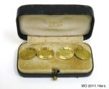 Label TextFDR presented his 1920 campaign staff with engraved gold cufflinks. The "Cuff Links Gang" met annually to celebrate Roosevelt’s birthday for the rest of his life. These cufflinks belonged to Charles H. McCarthy. They are on display in the RISING POLITICAL STAR exhibit in the Museum’s FOUNDATIONS OF A PUBLIC LIFE gallery.The cuff links come with a personalized box (MO 2011.14c).