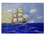 DescriptionAn original watercolor painting of the sailing frigate, USS CONGRESS. It depicts a side view of the three-masted sailing ship at full sail in open water. An American flag flies at the stern. The painting is signed and dated by the artist in the lower right corner: W Hill '41.