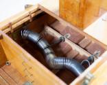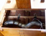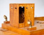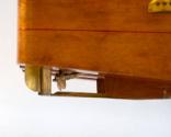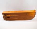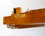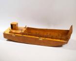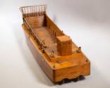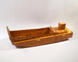 DescriptionA scale model of a Landing Craft Mechanized (LCM) boat. The boat is made of natural wood and has a drop-down ramp at the bow. The model is mounted on a wood base.