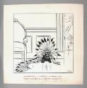 DescriptionAn original black and white cartoon featuring Franklin D. Roosevelt's Scottish terrier dog, Fala. The cartoon is of a scene showing Fala inside a room in the White House with an armchair to his left and a table with a vase and flowers visible through a doorway on the right. Fala is wearing a large Seminole feather headdress which partly trails along the floor. The artist's signature is in the lower right corner of the cartoon: ALAN FOSTER. The caption is typed on a slip of paper formerly adhered below the cartoon: "They've just made me an 'Honorary Seminole'!"