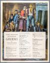 DescriptionA poster featuring a color painted illustration showing war-impacted Greek men, women, and children of all ages, some with visible injuries or illness, staring proudly forward against a backdrop of Greek ruins. Set over the lower portion of the illustration is a black and white printed poem entitled, "AN OPEN LETTER TO THE UNCONQUERABLE GREEKS By JOSEPH AUSLANDER / PAINTING BY ROBERT RIGGS," followed by a poem. Printed in the bottom right corner of the poster: "— from The Saturday Evening Post."