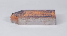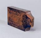 DescriptionA paperweight commemorating the launching of the escort aircraft carrier, USS ALAZON BAY (CVE-55). The paperweight consists of a small, heavy rectangular block of cast iron with inwardly curving right corners. Etched into the surface of the paperweight is an inscription that reads: U.S.S. Alazon Bay / ~ Sponsored by ~ / Mrs. Franklin D. Roosevelt / ~ April 5, 1943. ~ / Kaiser Company, Inc. / Vancouver Yard.