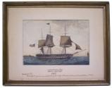 Label TextFDR displayed this painting of the USS NORTH CAROLINA (1820) directly behind his desk in his private study in the White House residence. The North Carolina was a 74-gun ship-of-the-line launched in 1820. Roosevelt gave this painting to Secretary of the Navy Josephus Daniels in 1914, while he was serving as Daniels’s deputy. Daniels later returned the painting to FDR.The print is matted with an off-white mat at the bottom of which is hand printed in ink: United States Ship / NORTH CAROLINA / 1827. Below the ship's name is a handwritten ink inscription by Josephus Daniels that reads: Christmas 1913 / Presented to Josephus Daniels, Secretary of the Navy, by Franklin D. Roosevelt, Assistant Secretary of US Navy.