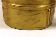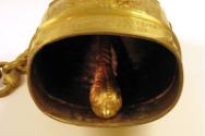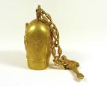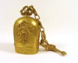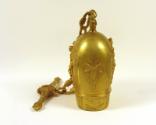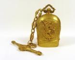 DescriptionA gilded metal bell and chain. The exterior of the bell has relief figures of St. Michael and the dragon on one wide side with the inscription: CAMPANA DELLA FORTUNA / SAN. MICHELE. Angels are depicted on the other wide side with the inscription and artist's name: CAPRI / G. Di Pietro. One of the narrow sides of the bell features a relief image of a goat's head and the foundry mark: DI GIACOMO / FONDERIA ART / NAPOLI.