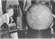 DescriptionA large and heavy 50" diameter map of the world globe on a scale of 1:10,000,000 (or 157.8 miles per inch). The globe rests on rubber rollers mounted on a moveable base. On the base is an inscribed plaque that reads: THIS GLOBE IS PRESENTED TO / THE PRESIDENT OF THE UNITED STATES / BY THE / UNITED STATES ARMY / CHRISTMAS, 1942. Another smaller plaque attached to the base is inscribed: FRONT / SCHACHT ASSOCIATES / NEW YORK, N. Y. The globe was executed by the Weber Costello Company of Chicago Heights, Illinois. The ball was made by Cummins and Engbert, NYC. The base was designed by Henry Dreyfuss and executed by L. L. Schacht of NY.
