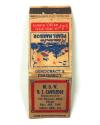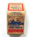 DescriptionAn empty matchbook with no remaining matches. The cover has a red and blue illustration of planes bombing naval ships with the caption and message below: Remember / PEARL HARBOR / Sell your IRON, STEEL, / METALS, RUBBER. On the back cover is printed contact information: W. O.W. / R. S. CARTLEDGE / Representative / 314 Masonic Bldg. / Phone / Res.: BEL. 1366 / Office: DEX. 421. A fold-over end flap has the striker along with the manufacturer's information: MARVIN D. EVANS CO. FT. WORTH, TEX.