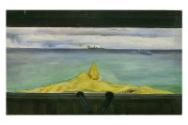 Label TextNavy Lieutenant Frederick Wight painted this view from a German coastal battery at Pointe de Hoc in Normandy during the June 6, 1944 D-Day landings. Pointe du Hoc is a promontory with a 100-foot cliff that overlooked the two American landing beaches (Omaha and Utah). On D-Day, U.S. Army Rangers attacked and captured the battery after scaling the cliff. Wight based this painting on sketches he made while the Allied beachhead was still under fire. This painting is one of two (see also MO 1945.83.2) he sent to Franklin Roosevelt as a token of his “esteem for the President’s war leadership.” When it was presented to Roosevelt on September 7, 1944, he listened intently to the story behind the painting and directed that it be sent to his library.Additional Details