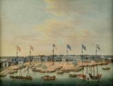 Label TextFDR’s grandfather, Warren Delano II, was a partner in Russell & Company, a merchant firm involved in trade with China. The American flag at the center of this painting indicates the location of Russell & Company in Canton, China. The painting is on display in FDR’S PRIVATE STUDY in the Permanent Exhibit.Additional Details
