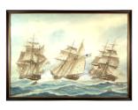 Label TextFranklin Roosevelt was an avid, lifelong collector of prints, engravings, and paintings illustrating the history of the United States Navy. He purchased this painting from J. S. Bradley, New York, NY in 1906 for $20. The painting is one of ten maritime pictures (MO 1948.41.1-10) that had hung in FDR's New York office at the Fidelity and Deposit Company of Maryland when he was a Vice President of the Company from 1920-1928. They stayed there until FDR sent them in 1933 to Basil O'Connor as a gift. O'Connor, in turn, presented the pictures to the FDR Library in 1947.The painting is glazed and framed in a 1" black wood frame with gilt inner trim.