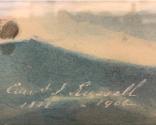 The painting is glazed and framed in a 1" black wood frame with gilt inner trim.