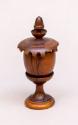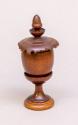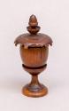 DescriptionA carved wood cup with an integrated stem and base. The cup has a removable wooden lid topped by a handle carved in the shape of an acorn. An inscription handwritten in ink on the underside of the cup's base reads: This cup was presented to Dr. A. K. Bond by his patient Miss Harriett Littig whose brother Nicholas cut the wood from the one of the U.S. Warships sunk in Hampton Roads by the Virginia.