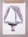 On the reverse of the drawing is a handwritten note in ink describing the image: Model of a sailboat made by FDR after he was paralyzed. This boat was in Miss Ellen Roosevelt's "Rosedale" boat house. F.D.R. and Louis Howe would sit on the front terrace and design and create the models and would then go down on the river and try them out.