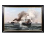 Rebel Ironclad Merrimac Destroying the US Frigate Congress
