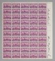 DescriptionA full pane of fifty unused U.S. 1937 purple 3¢ Army stamps (Scott 787) showing portraits of generals William T. Sherman, Ulysses S. Grant, and Philip H. Sheridan. The pane is from stamp sheet no. 21638. The right margin of the pane has the original ink signatures of "Franklin D. Roosevelt" and "Henry Morgenthau Jr."