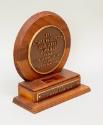 Label TextOn February 21, 1958 Eleanor Roosevelt traveled to New York City to receive this award from George Washington High School. Mrs. Roosevelt wrote about the presentation of the award in her February 25, 1958 edition of her popular "My Day" newspaper column, sharing: "I went up to the George Washington High School here in New York City last Friday to receive the annual school award. The whole school, 4,200 pupils strong, votes on who shall receive this award, and I felt it was a great honor these young people had done me."On the underside of the base is a manufacturer's label for Huber Allied, Inc. of New York, NY.