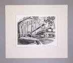The drawing is mounted to a piece of cardboard and comes with a window mat.