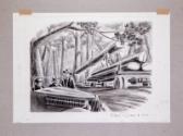DescriptionAn original pen and ink and ink wash drawing with gouache highlights showing Franklin D. Roosevelt and Sara Delano Roosevelt sitting in FDR's Ford Phaeton automobile watching logging operations. Standing next to the car is William Plog, the head foreman and gardener on the Roosevelts' Hyde Park, New York estate, as he discusses the progress of the work with FDR. Behind them, logs are being loaded onto a trailer. The drawing is signed by the artist in ink in the lower right below the image: Olin Dows © 1949.