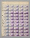 DescriptionA full pane of fifty unused U.S. 1934 deep violet 3¢ "Adaptation of Whistler's Portrait of his Mother" Mothers of America stamps (Scott 737). The pane is from stamp sheet no. 21205. The top margin of the pane has a badly faded ink inscription by Franklin D. Roosevelt: "This is the second sheet of stamps . . . on the 1st day of sale 5/2/34 James A. Farley Postmaster General." In the left margin is the original ink signature "Franklin D. Roosevelt". Also in the left margin is a black ink stamped message that reads: FROM THE FRANKLIN D. ROOSEVELT COLLECTION / AUCTIONED FEB., APRIL, 1946 BY H. R. HARMER INC., N.Y.