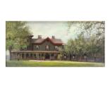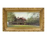 DescriptionA painting of "Springwood," the Roosevelt home in Hyde Park, New York, before it was remodeled in 1915. It depicts a gray-brown two story house with red trim. On the right side of the house is a series of lower extensions, and a three story tower is on the left. Ivy is seen growing around the columns of the wrap around porch. The house is bordered by trees and fronted by a lawn. The painting is signed by the artist in the lower right corner: I.V. Lounsbery. The painting is not dated, but was likely done before 1900. Handwritten in ink on the reverse of the canvas: Springwood / Hyde Park, N.Y.