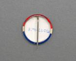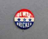 Physical DescriptionA round pinback button from the campaign of Thomas Dewey and John Bricker. The button consists of three horizontal bands in red, white, and blue. On the red and blue bands is white text that reads: DEWEY / BRICKER. The center white band has three blue stars. The manufacturer's information, and a union bug, are printed along the rim.