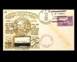 Physical DescriptionAn unaddressed stamp cover commemorating Franklin Roosevelt's 1939 Presidential Cruise on the USS HOUSTON. On the left side of the white envelope is a gold-colored thermographic cachet which includes illustrations of a map, a city scene, and the Panama Canal and text that reads: UNITED STATES FLEET / VISITS - EAST - COAST / JANUARY JUNE 1939 / FROM → [list of locations] / → TO [list of locations]. Adhered at the bottom of the cachet is a small black and white photograph of the ship, USS HOUSTON.