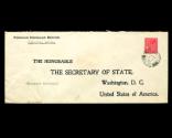 Physical DescriptionA white stamp cover from the American Consular Service in Valletta, Malta. The envelope is addressed to (pre-printed): THE HONORABLE / THE SECRETARY OF STATE, / Washington, D. C. / United States of America. Typed to the left of the address: (Passport Division). The return address is in the upper left corner. Adhered in the upper right corner of the envelope is a Maltese 1926-1927 red 1½p King George V postage stamp (Scott 134). The envelope is postmarked Valletta, Malta, July 9, 1934.