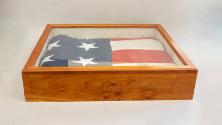 Physical DescriptionA 48-star American flag. The flag has been folded into approximately a square and placed inside a custom-made cherry wood display case designed for ceiling mounting. On one side of the case is an oval brass plaque with engraved text that reads: "American Flag which was flown over the east / front of the U.S. Capitol . . . on the / occasion of my second Inauguration on January 20th, 1937" / Franklin D. Roosevelt / February 10, 1937.