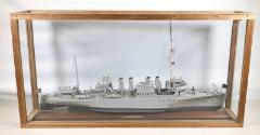 Physical DescriptionA ship model of the destroyer, USS. BAINBRIDGE (DD-246). The wooden model of a two-masted steam ship has a two-tone gray hull, four smoke stacks, no sails, an American flag flying from the stern, and the number "246" painted on both sides at the bow. The model is mounted on a wooden base to which is affixed a brass name plaque: U.S.S. BAINBRIDGE. The model and base are fixed inside a wood and glass case.