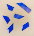 a) The puzzle consists of five individually shaped red cardboard pieces that form the letter "F”, and six individually shaped blue pieces that form the letter "D".