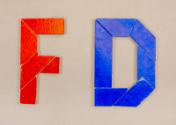 Additional Detailsa) The puzzle consists of five individually shaped red cardboard pieces that form the letter "F”, and six individually shaped blue pieces that form the letter "D".
